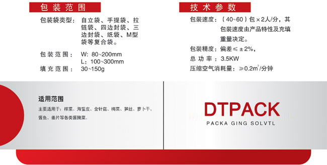 主要適用于:榨菜、海蜇皮、金針菇、梅菜、筍絲、蘿卜干、醬魚、姜片等各類醬腌菜。